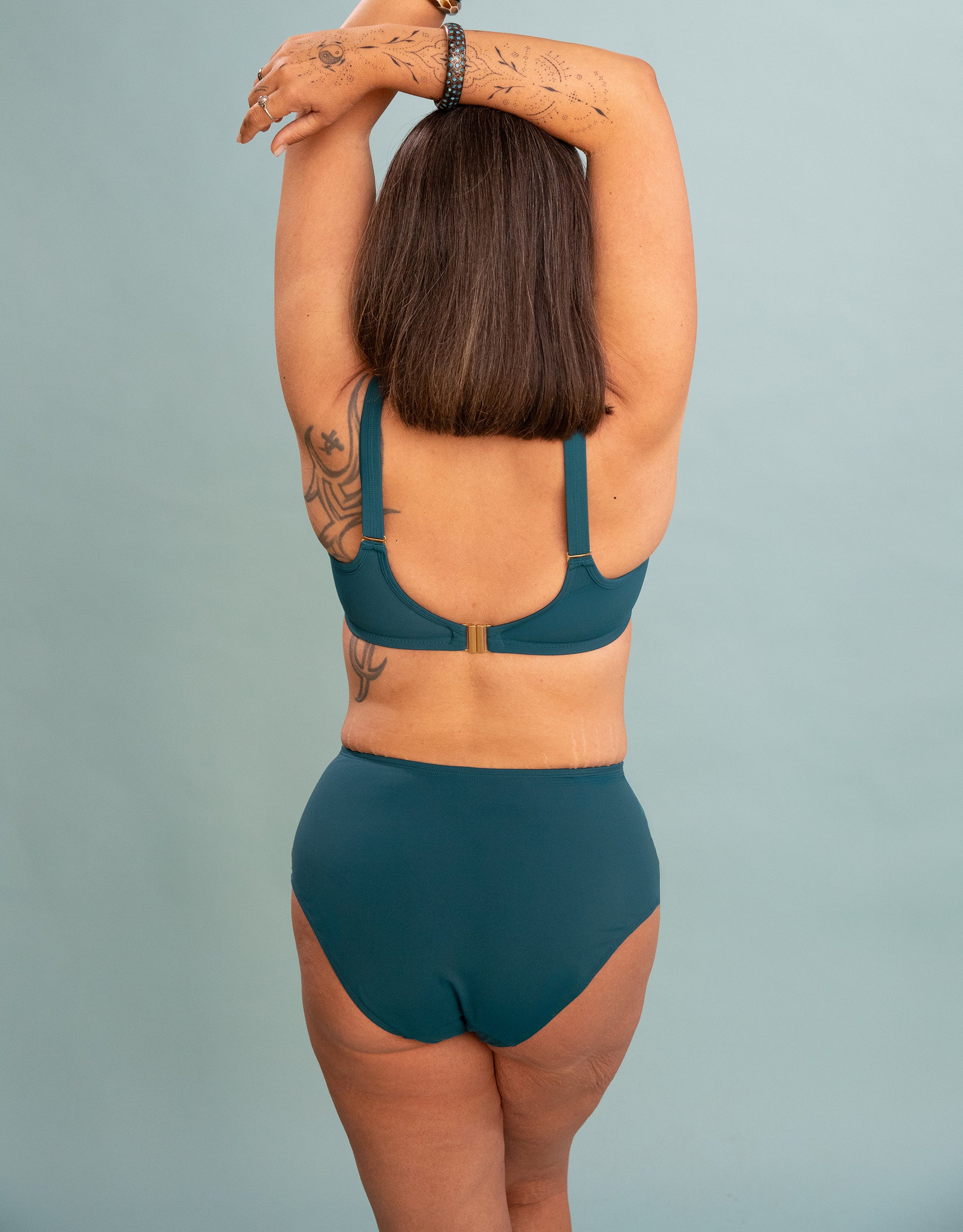 Die satte Farbe lake ist wie ein kühler Sprung ins klare Nass: frisch, lebendig und unfassbar schön. Unsere "Valencia" High-Panty bringt genau dieses Gefühl und umschmeichelt Deine Silhouette mit einer eleganten, überkreuzten Raffung und einem lässig tieferen Sitz für entspannten Chic. Vorn gefüttert für perfekten Halt, nachhaltig dank 100 % recyceltem Polyamid im Obermaterial. Ein Look, der Dich fühlen lässt wie Sommer pur.