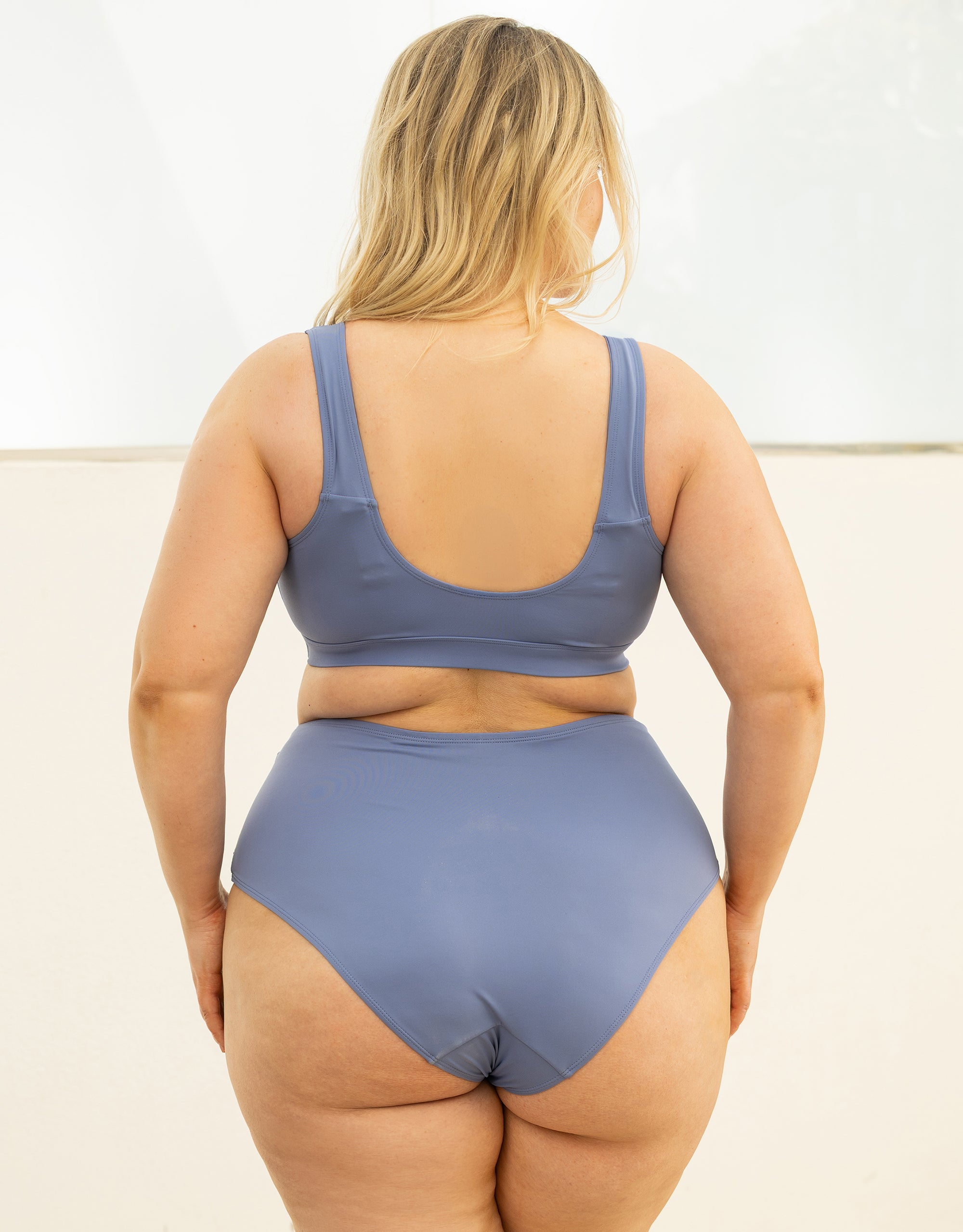 Bralette-Fans, das ist Euer Moment: Das Bikini-Top Valencia in Bluegrey ist für alle, die auch am Wasser nicht auf den Komfort ihres SugarShape-Bralettes verzichten wollen – und dabei einen sportlich-lässigen Look lieben.