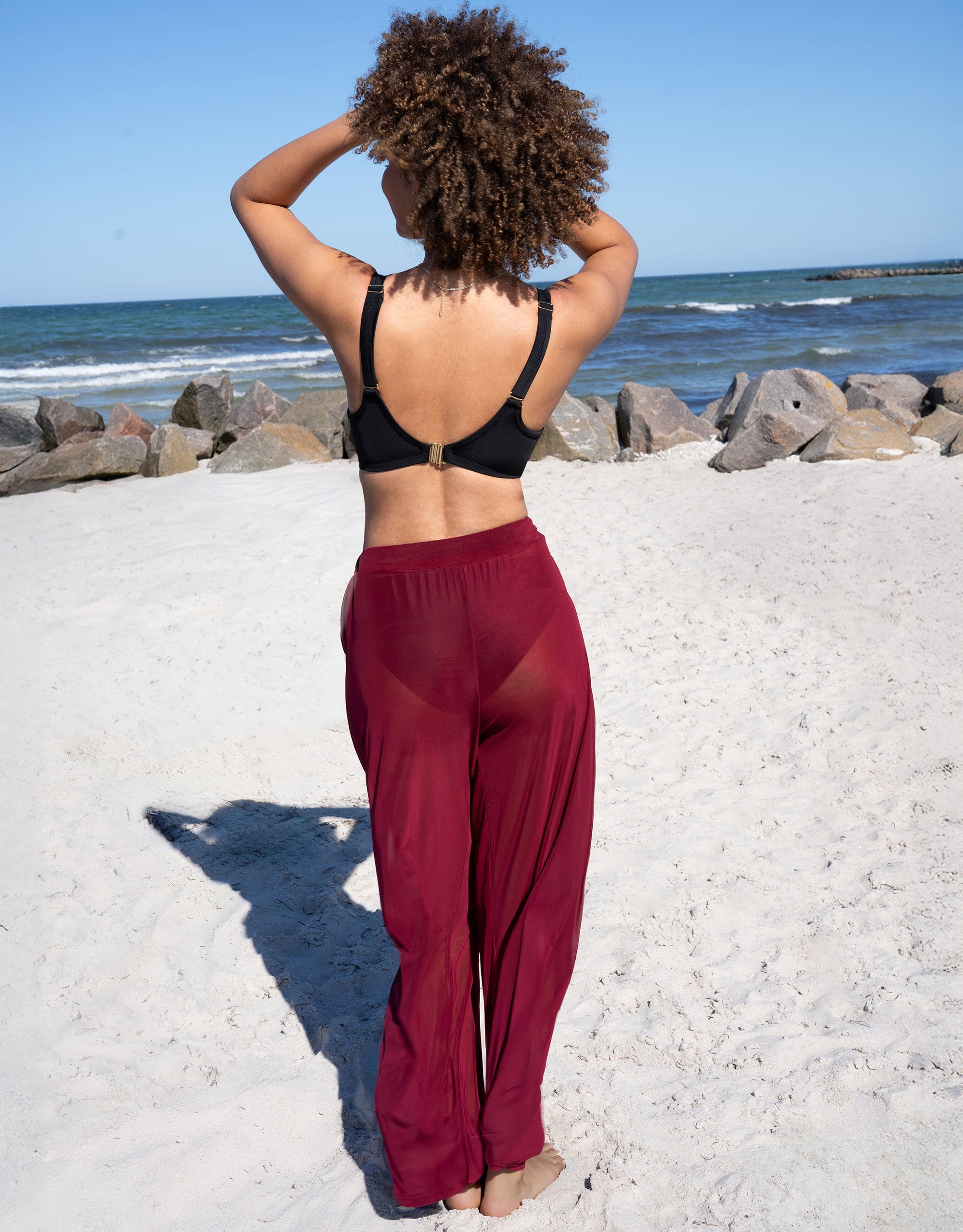 Die Hose "Sheer" transparent bordeaux kombiniert entspannten Tragekomfort mit einem modernen Look. Das transparente Material macht sie zum idealen Layering-Piece, egal ob über Swimwear, Body oder als Teil Deines Festival-Outfits.